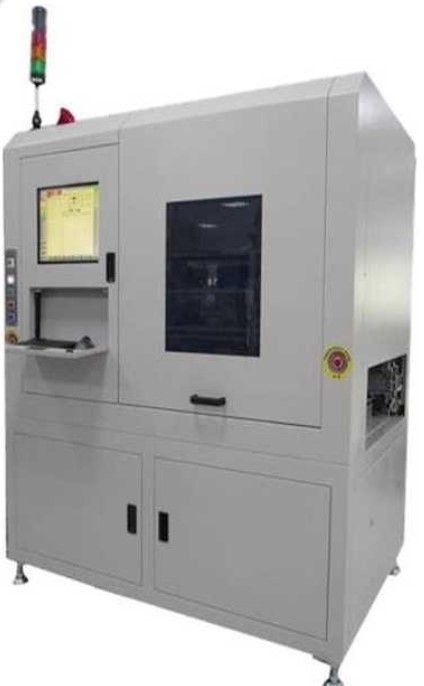 This equipment is used for automatic gluing and ball mounting of products on semiconductor boats. The Boat is pushed our of the Magazine, and sent to the runner after being detected by AOI ofr material shortage. The arm is used for gluing and ball placement in sequence, and then AOI is used to detect wheather the solder balls on the Boat are defective. If there is any defect, it will be sent to the Reject area; if there is no defect, it will be sent to the runner to the next process.